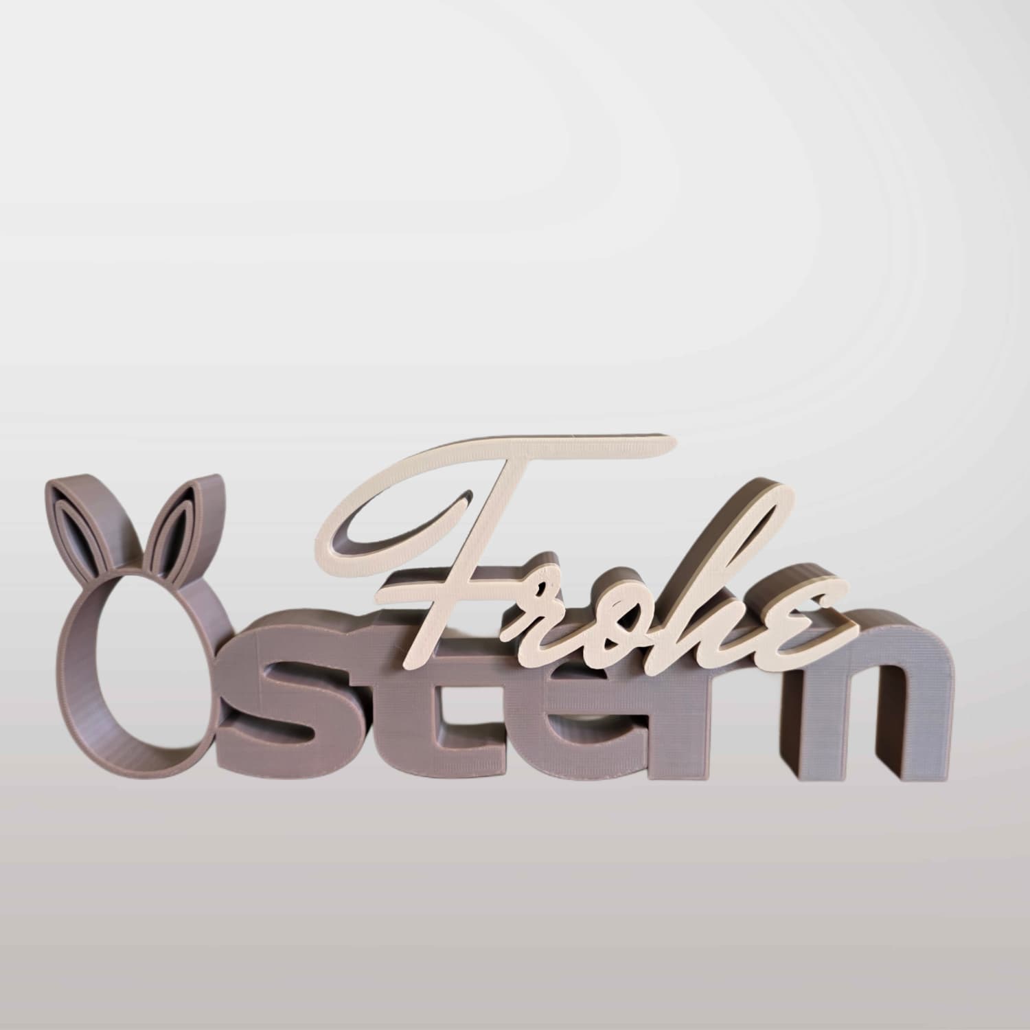 Verleihe deiner Osterdekoration ein zeitgemäßes Upgrade! Unser hochwertiger „Frohe Ostern“ Schriftzug kombiniert innovative Fertigungstechnik mit stilvollem Design. Ob auf dem Sideboard, dem Ostertisch oder im Fenster – dieser Aufsteller ist ein echter Blickfang, der traditionelle Ostergrüße in einem modernen Look präsentiert.