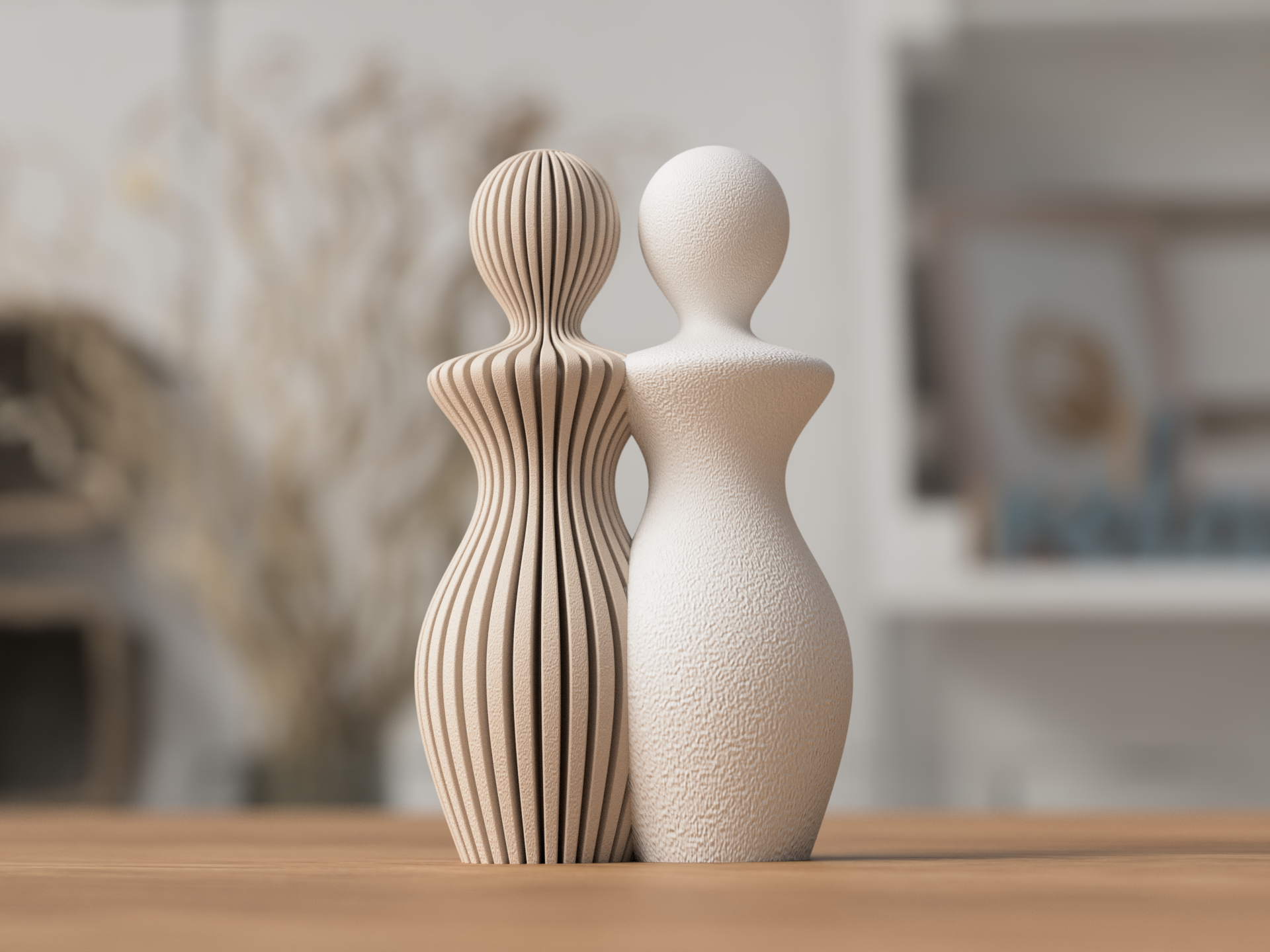 Figur-Set „Couple“ – Zeitlose Eleganz für eure gemeinsame GeschichteLiebe ist so individuell wie die Menschen, die sie teilen. Mit unserem Figur-Set „Couple“ im angesagten Japandi-Stil schenkst du mehr als nur eine Dekoration – du schenkst ein Symbol für Verbundenheit. Die minimalistische Formsprache vereint japanische Ästhetik mit skandinavischer Gemütlichkeit und macht diese Statue zum Blickfang in jedem modernen Zuhause.Für jeden Anlass, der das Herz berührtOb als Highlight der Hochzeitsdekoration, als persönliches Geschenk zur Verlobung, zum Jahrestag oder als romantische Überraschung zum Valentinstag: Das Set „Couple“ fängt den Zauber des Moments ein. Es ist die perfekte Wahl für alle, die ein Geschenk suchen, das tiefe Bedeutung und modernes Design vereint.Vielfalt, die verbindet: Eure Liebe, eure WahlWir feiern die Liebe in all ihren Facetten. Deshalb lässt sich das Set „Couple“ völlig frei konfigurieren:Inklusivität ohne Kompromisse: Wähle zwischen einem Mixed Couple oder einem gleichgeschlechtlichen Couple. Gestalte dein Set so, wie es zu deinem Leben oder dem des beschenkten Paares passt.8 Exklusive Farben: inde die Farbe, die eure Persönlichkeit unterstreicht.Ein haptisches Erlebnis: „Ripped“ oder „Solid“?Damit deine Statue nicht nur optisch, sondern auch haptisch überzeugt, bieten wir zwei einzigartige Oberflächenstrukturen an:Ripped (Gerippt): Eine markante, moderne Linienführung, die durch das innovative 3D-Druckverfahren entsteht und für spannende Lichtspiele sorgt.Solid (Glatt): Eine fein-strukturierte, matte Oberfläche, die für Ruhe und minimalistische Perfektion steht.Nachhaltige Qualität aus dem 3D-DruckerJedes Set wird mit höchster Präzision aus umweltfreundlichem, biologisch basiertem PLA gefertigt. Die feine Schichtoptik des 3D-Drucks macht jede Figur zu einem Unikat moderner Handwerkskunst.Produktdetails:Modell: Figur-Set „Couple“Stil: Japandi / MinimalismusStrukturen: Ripped (Grob) oder Solid (Fein strukturiert)Anlass: Hochzeit, Verlobung, Valentinstag, Jahrestag, EinzugMaterial: Nachhaltiges PLA (biologisch abbaubar)Geschenk-Tipp: Kombiniere das „Couple“-Set mit einer unserer Japandi-Vasen für das ultimative Hochzeitsgeschenk. Ein zeitloses Ensemble, das das Brautpaar ein Leben lang an ihren großen Tag erinnern wird.Hast du gewusst?Du kannst dein Set jederzeit erweitern! Wenn aus dem Paar eine Familie wird, findest du bei uns auch passende Kinder- und Haustier-Figuren, die deinen Japandi-Stil perfekt ergänzen.
