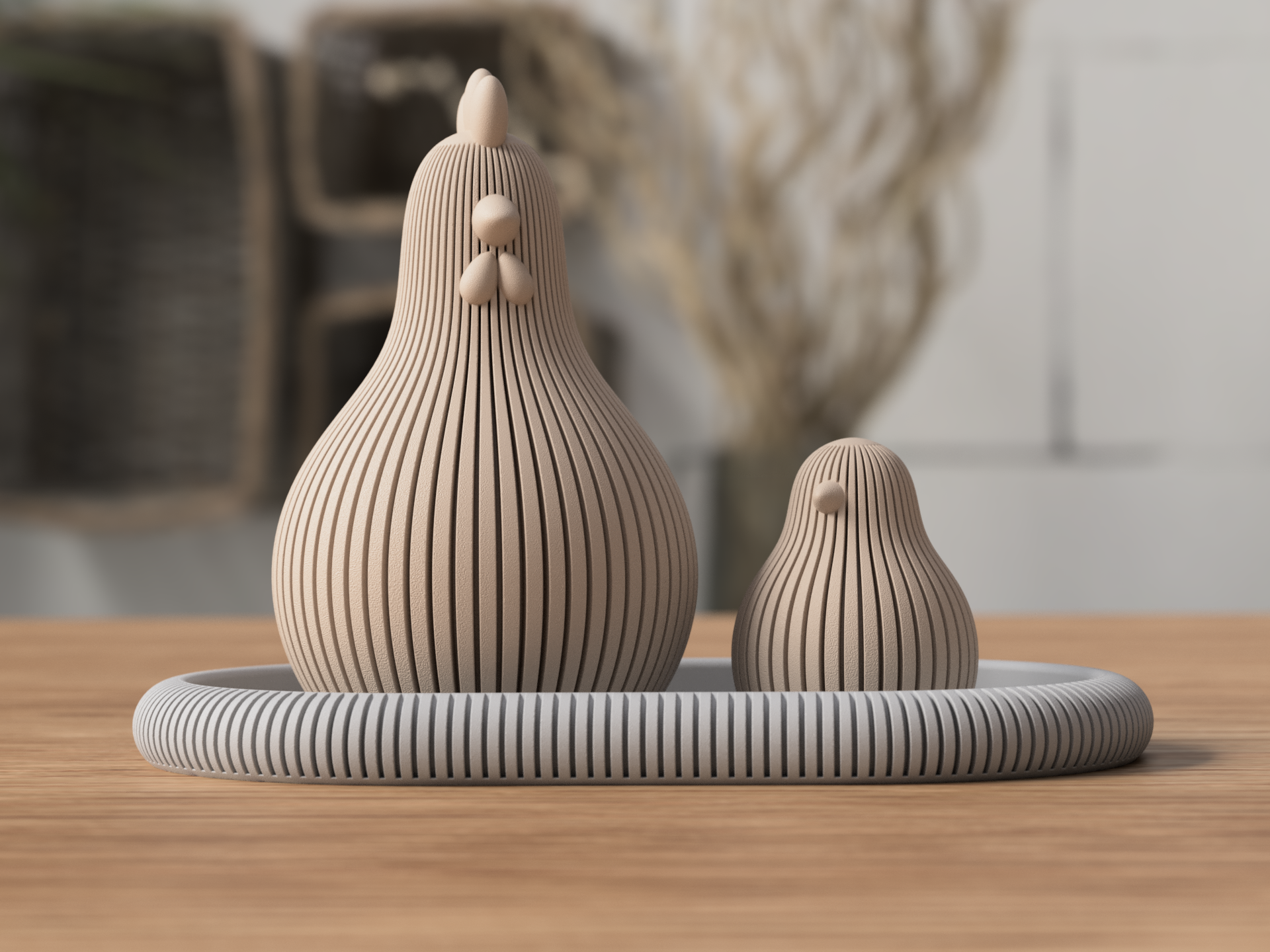 Oster-Duo: Deko-Huhn & Küken – Personalisiertes Frühlings-BundleBringe frischen Wind in deine vier Wände mit unserem charmanten Deko-Figuren-Set. Bestehend aus einem stolzen Huhn und seinem niedlichen Küken, ist dieses Duo das perfekte Highlight für deine Osterdekoration oder als zeitloser Akzent für deine Frühlingsdeko.Dein Design, deine FarbenDas Besondere an diesem Bundle? Du wirst selbst zum Designer! Während das Huhn in unseren Produktfotos als farbenfrohes Beispiel dient, hast du die volle Freiheit:Individuelle Farbwahl: Wähle für das große Huhn und das kleine Küken jeweils deine Lieblingsfarbe aus unserer Palette.Harmonisch oder Kontrastreich: Gestalte ein klassisches Set in einheitlichen Tönen oder kombiniere mutige Farben für einen modernen Look.Produktdetails auf einen BlickDieses Set besticht durch klare Formen und eine hochwertige Verarbeitung, die in jedem Regal, auf dem Ostertisch oder auf der Fensterbank zur Geltung kommt.Maße Huhn: Beeindruckende 132 mm Höhe – ein echter Blickfang.Maße Küken: Goldige 60 mm Höhe – die perfekte Ergänzung.Einsatzbereich: Ideal als Tischdeko, Ostergeschenk oder moderne Ganzjahres-Deko.Material: Hochwertiges PLADeko-Tipp: Platziere das Duo in einem Nest aus Naturmaterialien oder kombiniere es mit bunten Eiern, um eine moderne und zugleich gemütliche Osteratmosphäre zu schaffen.Warum dieses Bundle wählen?Im Vergleich zum Einzelkauf erhältst du hier das perfekt aufeinander abgestimmte Paar zum Vorzugspreis. Durch die freie Farbauswahl passt sich das Set garantiert deinem bestehenden Einrichtungsstil an – egal ob skandinavisch schlicht, bunt-verspielt oder im Landhaus-Look.